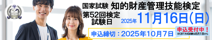 第52回知的財産管理技能検定は2025年11月16日実施予定です