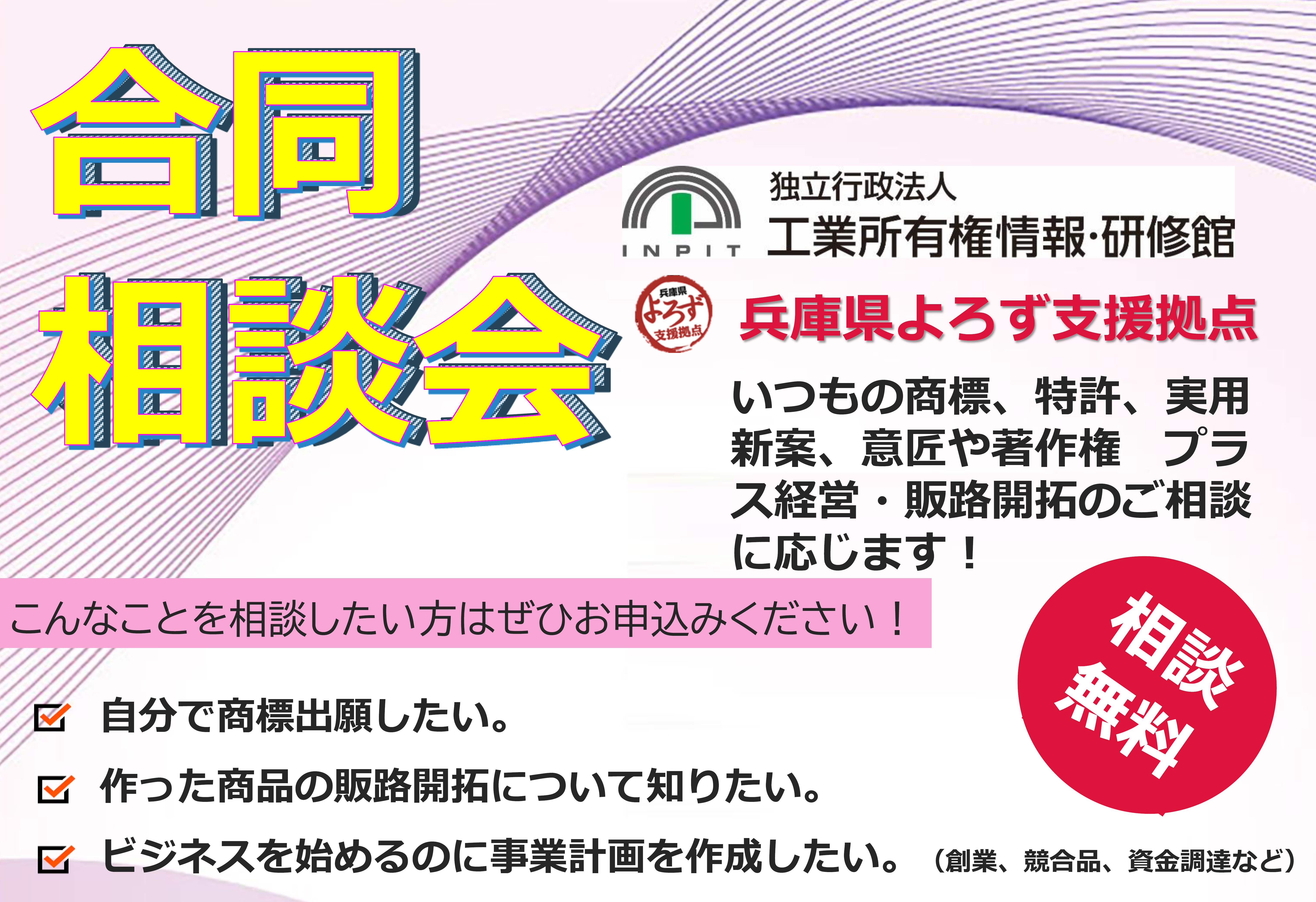 8月22日、兵庫県発明協会において合同相談会を実施します。