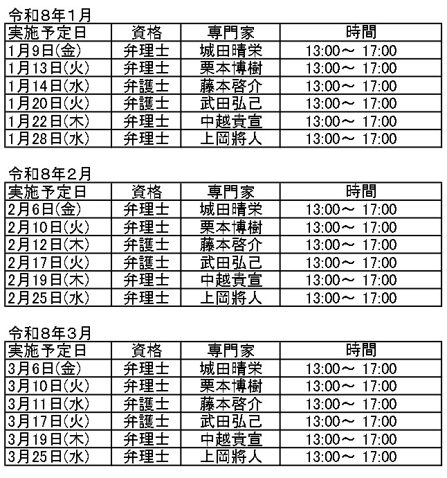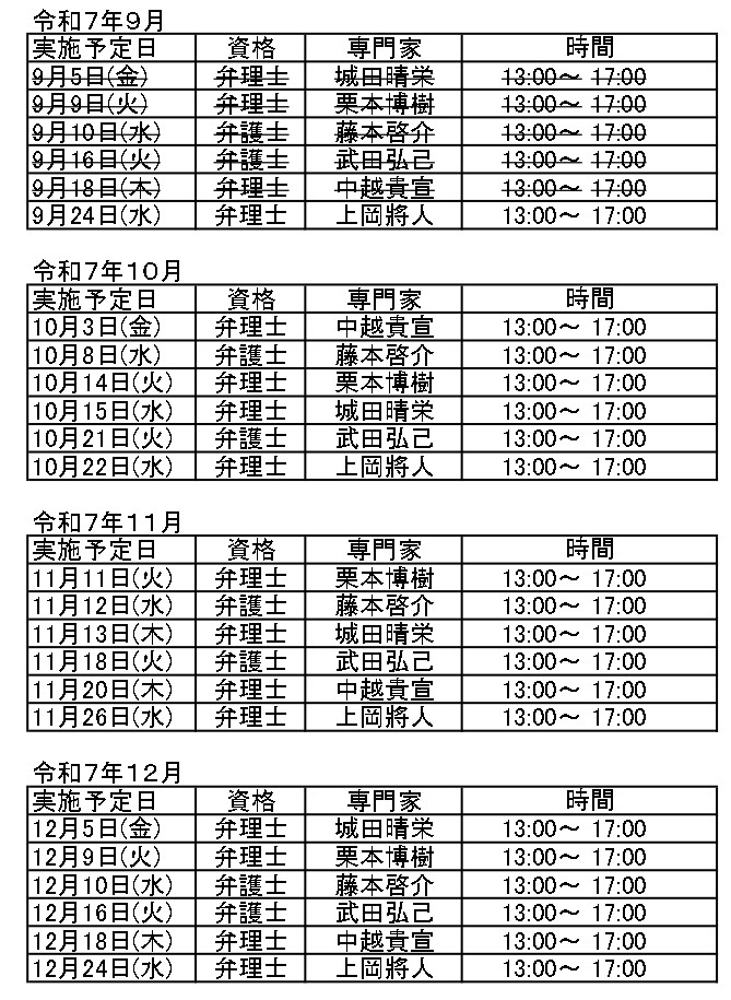 臨時窓口相談会スケジュール