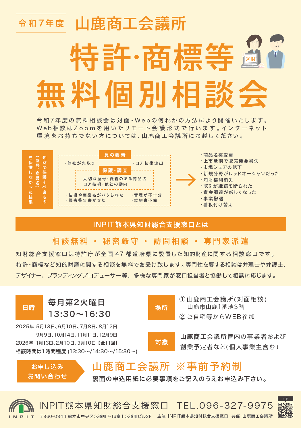 【臨時相談窓口】R7 山鹿商工会議所 知財に関する無料相談窓口開設のご案内