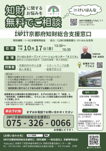けいはんな会場 知的財産 臨時窓口相談会(無料) のご案内 【10月17日】