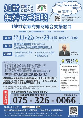 宮津市 知的財産相談会(無料)臨時窓口 のご案内【11月22日・11月23日】