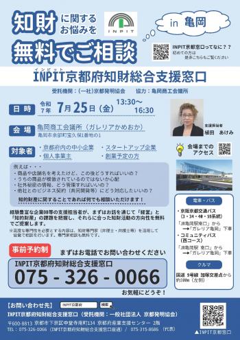 亀岡市 知的財産相談会(無料)臨時窓口 のご案内【7月25日】