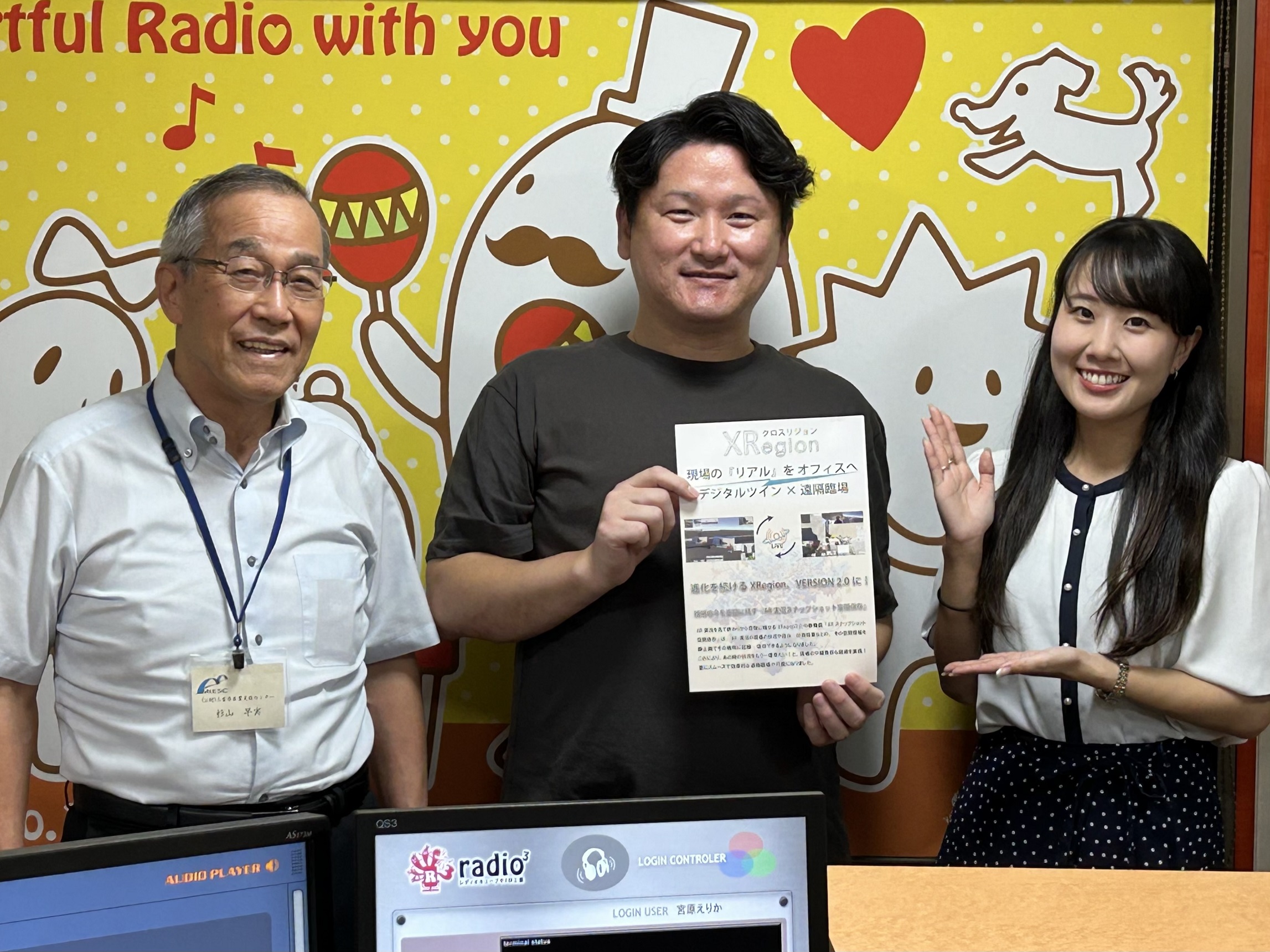 写真(左から:杉山、桑山様、宮原アナウンサー)