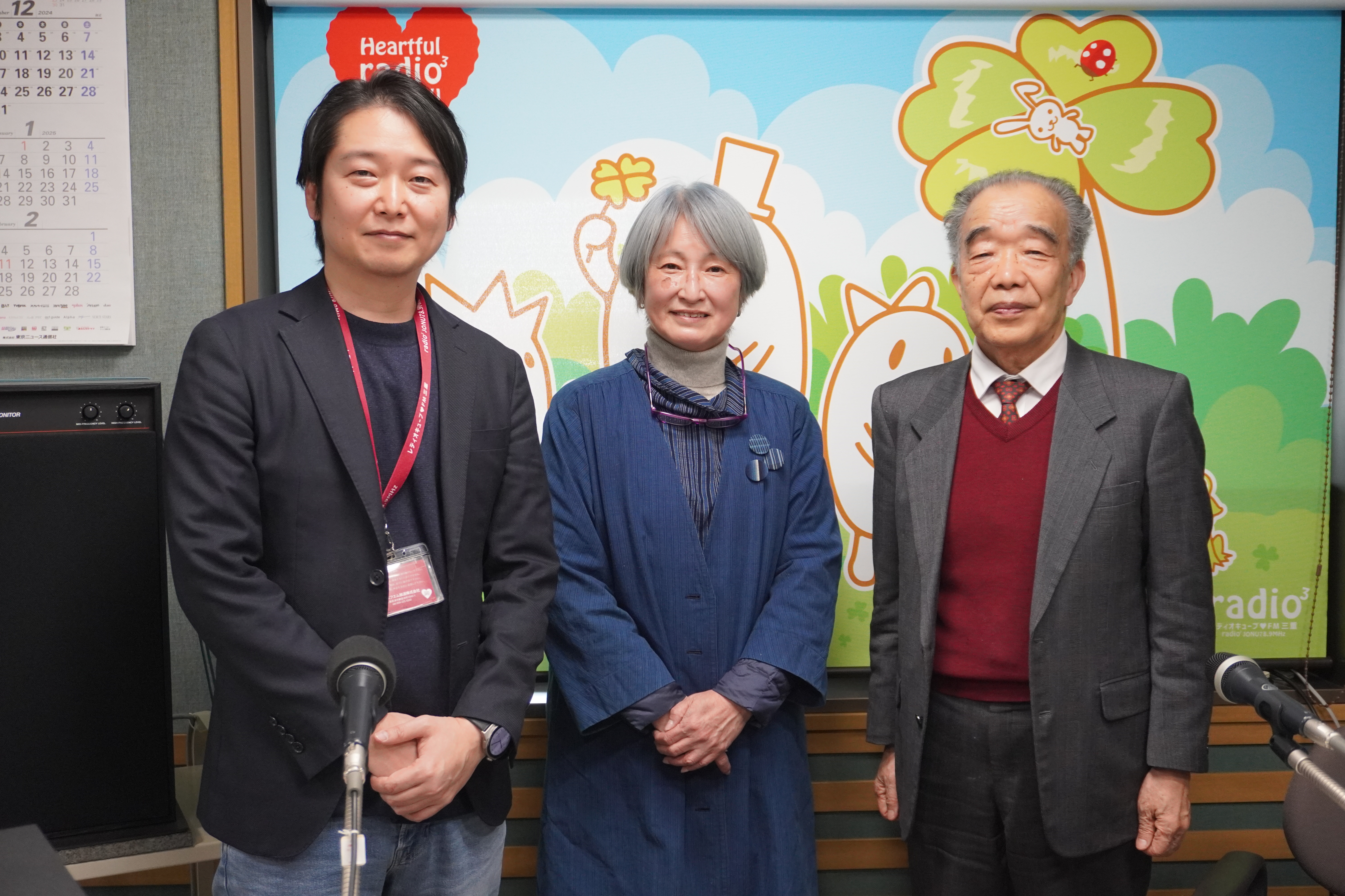 写真(左から:FM三重アナウンサー 代田様、松阪もめん振興会 坂梨様、村上)