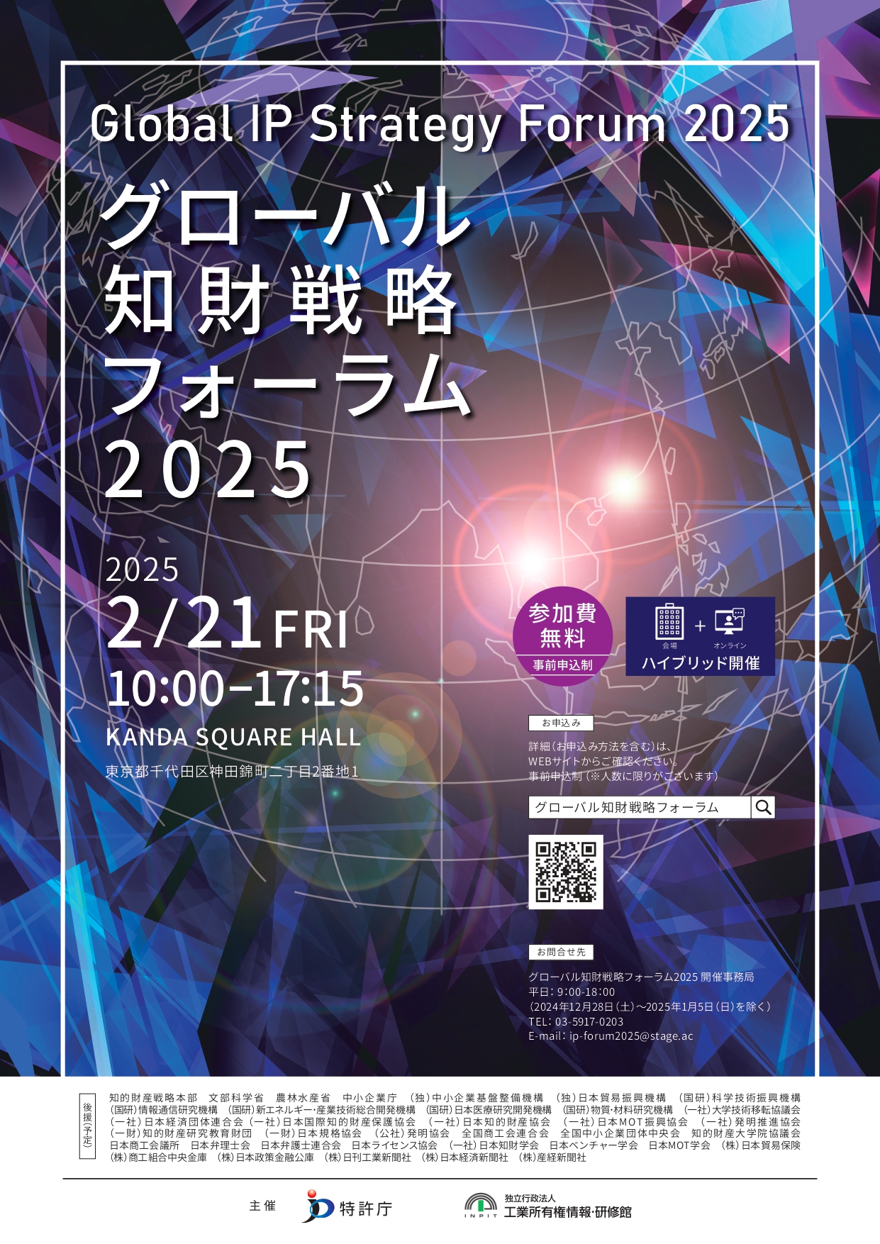 『グローバル知財戦略フォーラム2025』(主催:特許庁、INPIT)を開催します!(2月21日(金)10:00~17:15)