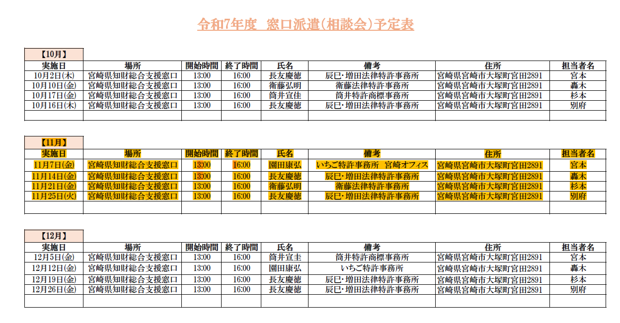 当窓口では、知財の専門家による『無料相談会』を、毎月4回開催しています