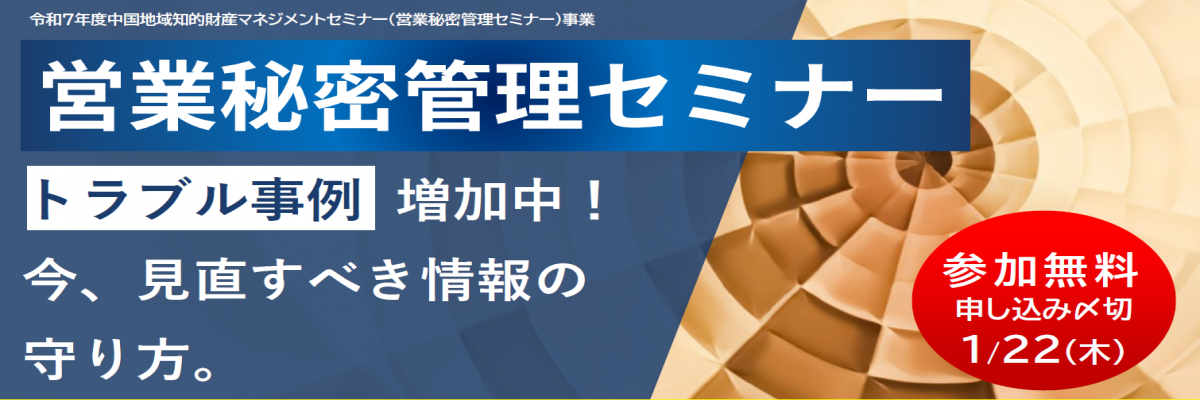 【1/26開催】営業秘密管理セミナー のご案内(中国経済産業局)