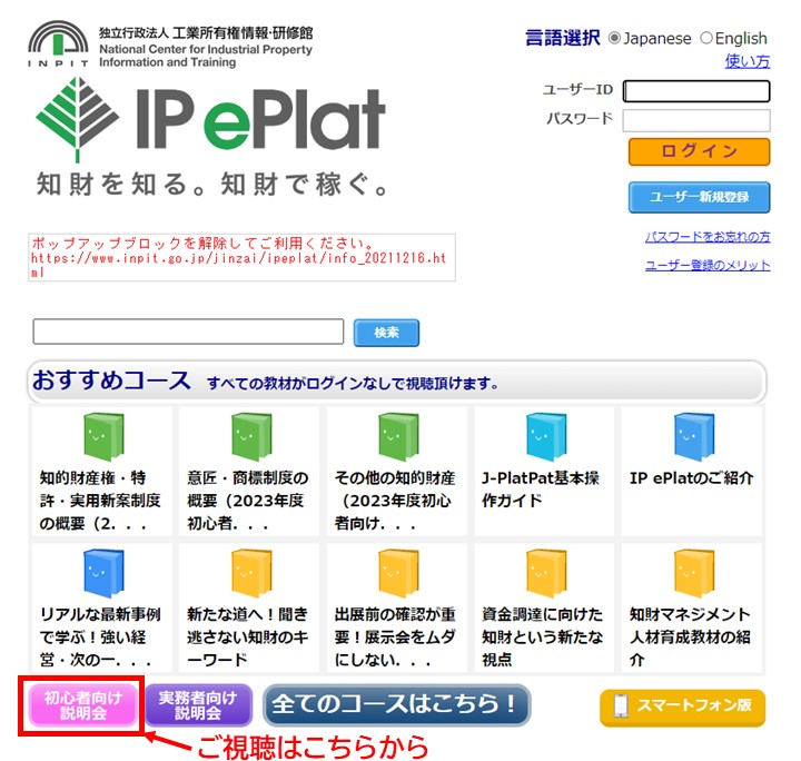 - (INPITより)2023年度知的財産権制度説明会(初心者向け)オンライン配信のご案内