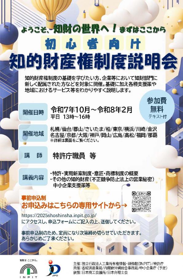 令和7年度知的財産権制度説明会(初心者向け)のご案内
