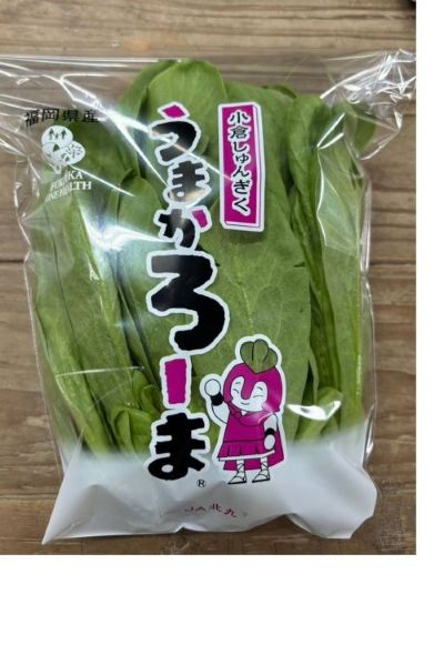 ネーミングは「うまかろーま」とし、パッケージカラーはピンク色を使って親しみやすくしました。大葉しゅんぎくのルーツは下関市にイタリアから持ち込まれて広まったと言われており、下関や小倉地域の生産者や消費者から「ローマ」と呼ばれて親しまれてきました。 今回、若い世代や子供たちにもおいしく食べてほしいという願いから、方言の 「うまか」と「ローマ」を合わせて「うまかろーま」としました。